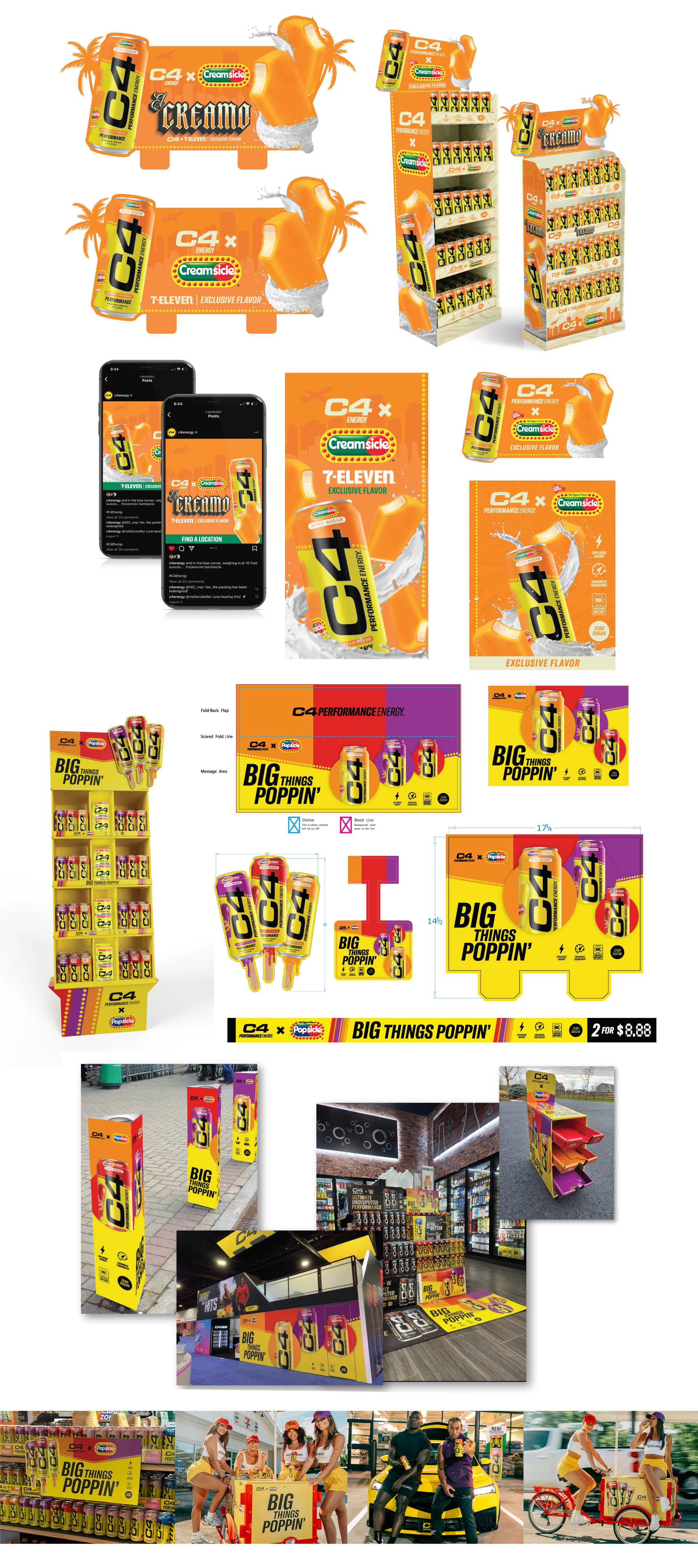 Rooted in C4 Energy’s bold brand standards, every large-scale campaign is crafted with precision, ensuring consistency while pushing creative boundaries. By staying true to the brand’s high-energy identity—through electrifying visuals, high-impact messaging, and strategic design execution—each campaign fuels engagement across digital, print, retail, and experiential activations.